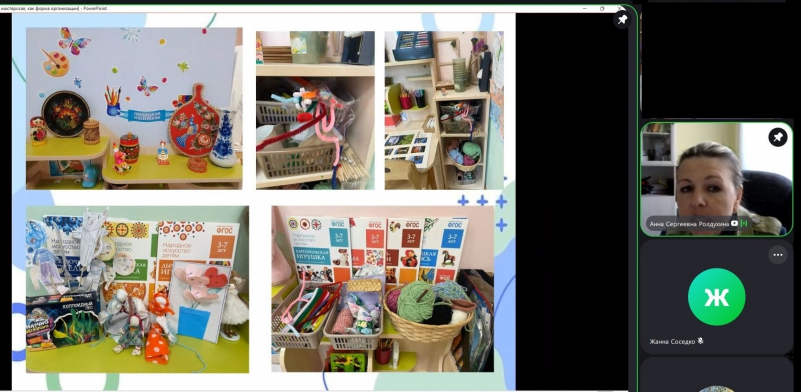 Плаксина Оксана Львовна, воспитатель Муринского центра образования №1 представила опыт организации пространства детской самореализации в форме творческой мастерской.