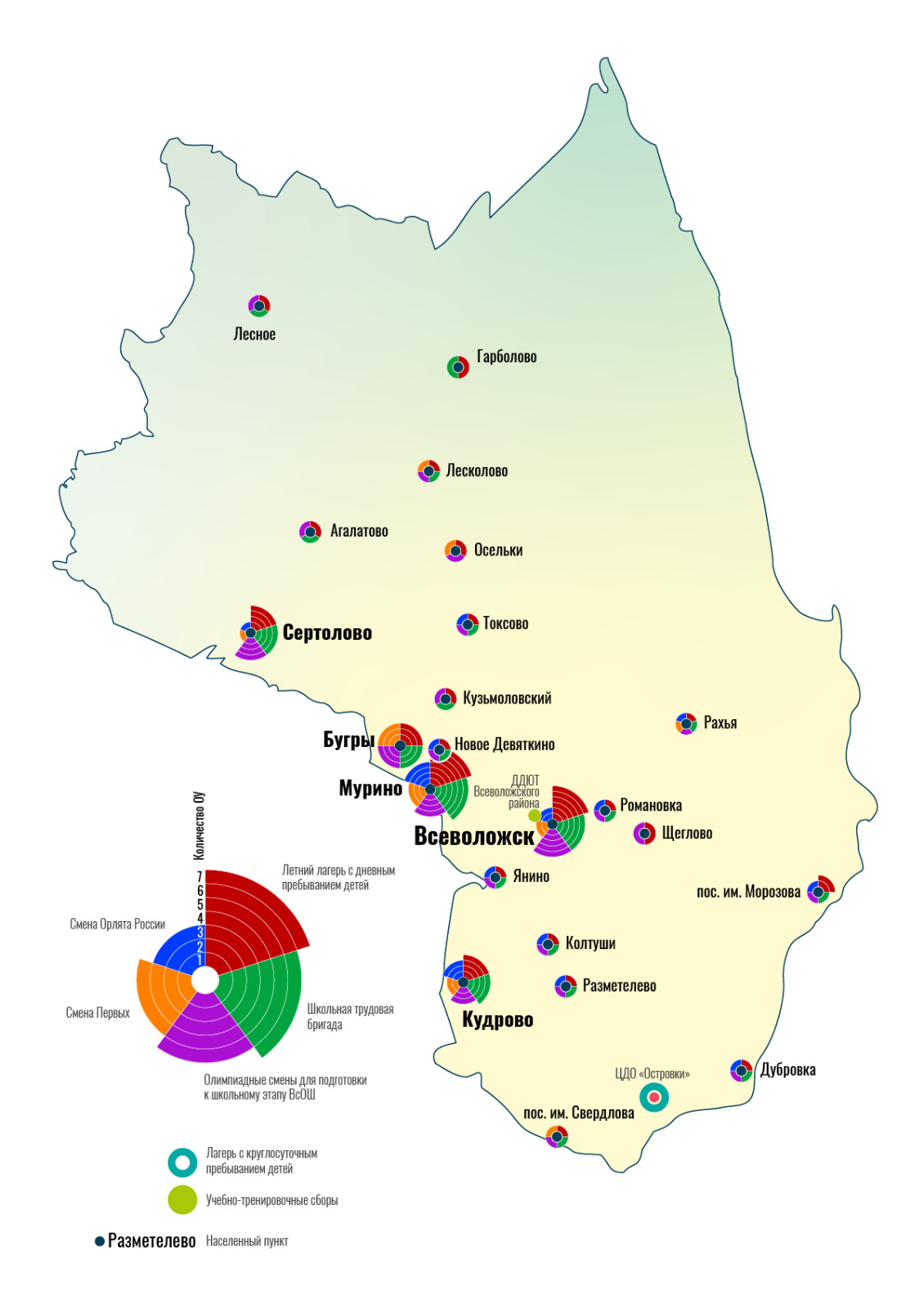 42 лагеря с дневным пребыванием детей на базе функционирующих образовательных учреждений и МООДО «ЦДО «Островки» включены в Реестр организаций отдыха детей и их оздоровления, находящихся на территории Ленинградской области, размещенный на сайте комитета общего и профессионального образования Ленинградской области (https://edu.lenobl.ru/ru/upravlenie-obrazovaniem/depobr/otdyh-i-ozdorovlenie-detej-podrostkov-i-molodezhi/reestr-organizacij-otdyha-detej-i-ih-ozdorovleniya-na-territorii-lenin/).