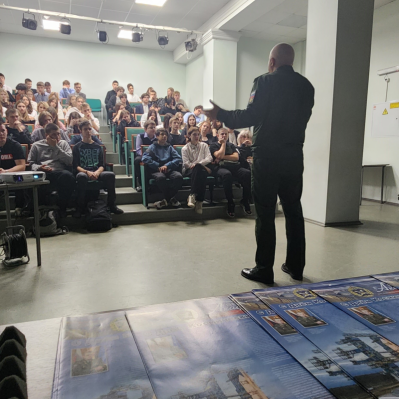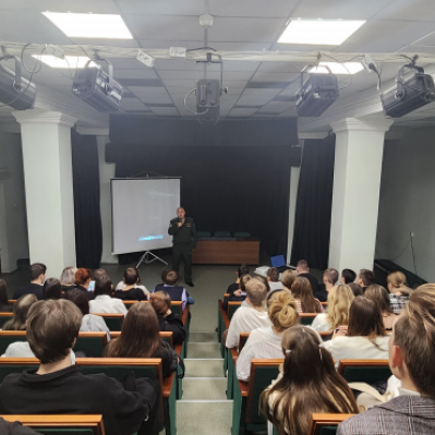 Игорь Васильевич также рассказал школьникам истории своих воспитанников, которые и на данный момент времени совершают героические поступки в зоне специальной военной операции. После этого Игорь Васильевич провел с ребятами профориентационную работу в рамках дальнейшего поступления обучающихся в Военно-космическую академию имени А.Ф. Можайского, был показан фильм об академии с описанием факультетов и специальностей, на которые могут поступить ребята. Некоторые ребята всерьез заинтересовались поступлением в академию и в конце мероприятия подходили и задавали свои вопросы Игорю Васильевичу.