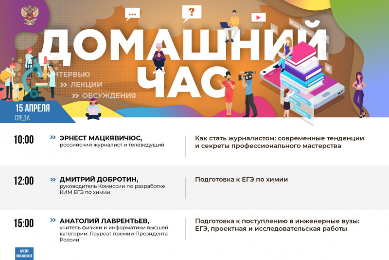 15 апреля эфиры онлайн-марафона «Домашний час» в социальной сети «ВКонтакте» стартовали в 10:00. Российский журналист и телеведущий Эрнест Мацкявичюс рассказал о том, как стать журналистом, о современных тенденциях и секретах профессионального мастерства.