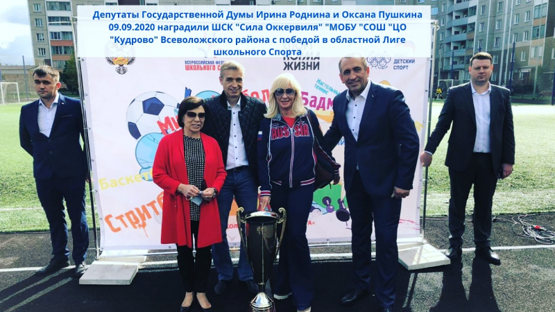 Поздравляем также школьный спортивный клуб «Сила Оккервиля» МОБУ «СОШ «ЦО «Кудрово» с победой в областной Лиге школьного спорта. Поздравления и кубок принял директор центра образования Соловьев Игорь