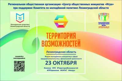 23 октября 2021 года на базе АМУ «КДЦ «Южный» состоялся 3-й Ленинградский областной форум молодежных инициатив в сфере предпринимательства и финансовой грамотности «Территория возможностей». Данный проект реализуется на средства гранта Комитета по молодежной политике Ленинградской области.