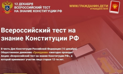 В этот день Общественное Движение «Гражданин» проводит акцию «Всероссийский тест на знание Конституции РФ», которая пройдет в форме добровольного электронного теста для лиц старше 12 лет в двух форматах: на официальных площадках Акции и на платформе «Гражданин» в онлайн-формате.