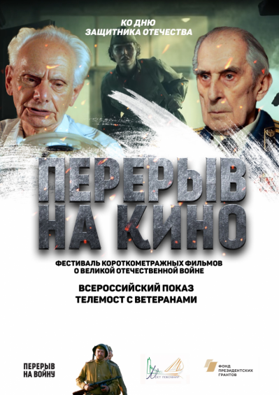В рамках культурно-образовательной программы VIII молодёжного кинофестиваля военно-исторических фильмов «Перерыв на кино» Фонд «Мост поколений» организует всероссийский кинопоказ о подвиге советских воинов в годы Великой Отечественной войны и онлайн-телемост с их героями - фронтовиками, приуроченные ко Дню защитника Отечества.